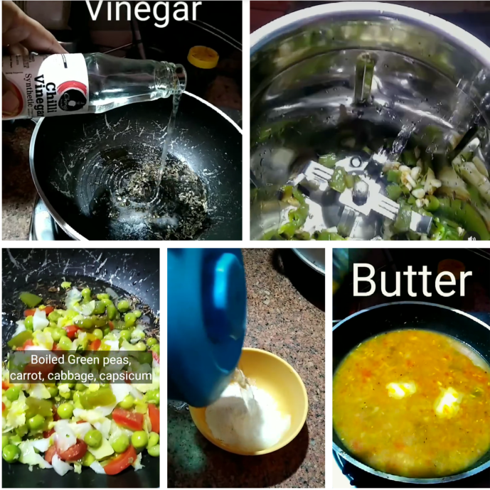 - 250 gm boiled and chopped green peas, carrot, cabbage, capsicum.